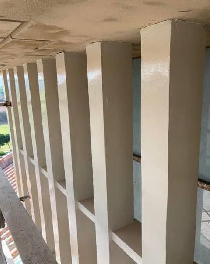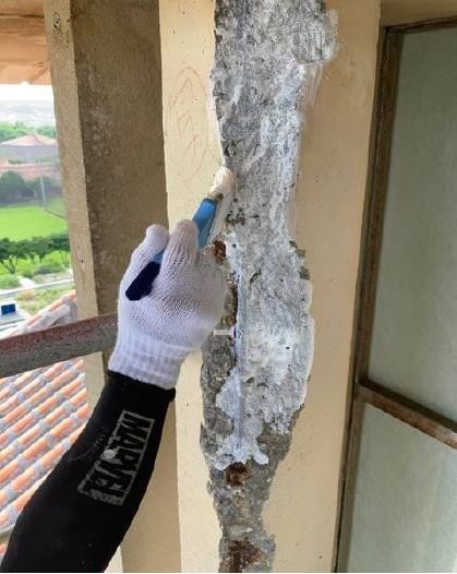 鉄筋コンクリート構造物の補修 =海沿いのコンクリート構造物にて塩分が浸透し、コンクリートが剥落= 場 所 沖縄県ゴルフ場 仕 様 テリフィック GC-100テリフィック GC-110テリフィック GC-13モルタルコスモファインマイルドルーフ S(ダンセイ) 【施工前】 【施工後(5年後)】